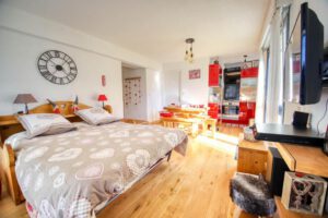 Situé à Taninges, au pied des Alpes, l’appartement Comte Rouge offre un cadre paisible avec une vue magnifique sur la montagne, un balcon, un jardin et un accès skis aux pieds. Ce logement climatisé de 32 m² comprend une chambre, un salon avec canapé-lit, une cuisine équipée (réfrigérateur, machine à café) et une salle de bains avec douche et sèche-cheveux. Les voyageurs disposent également d’une télévision, d’un lecteur DVD et d’un espace extérieur idéal pour se détendre après une journée d’activités.